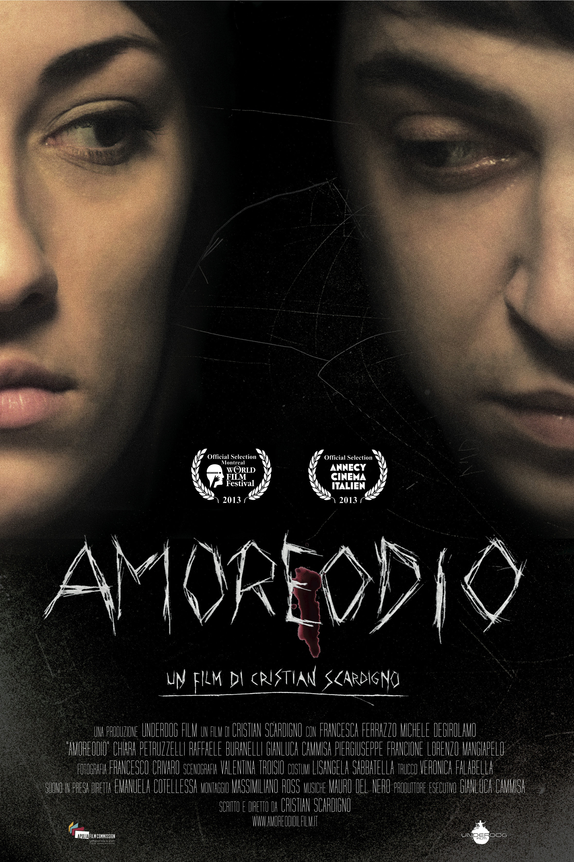 Amoreodio è stato girato a Torremaggiore in provincia di Foggia. A noi serviva un paesino piccolo. Qualsiasi posto in Italia andava bene. Avevamo il produttore esecutivo che è di Torremaggiore, lui è uno dei soci della nostra produzione, la Underdog Film. Abbiamo avuto il supporto del comune e dei commercianti della zona. Poi abbiamo vinto il bando della Apulia Film Commission. Noi sconosciutissimi, al primo film, avevamo partecipato al bando dicendo “Ma sì, proviamo! Tanto…”. E invece abbiamo vinto. In Puglia abbiamo trovato tutto quello che ci serviva, la gente è stata incredibile, una grandissima disponibilità. Senza l’ospitalità delle persone non avremmo potuto portare a termine il film. Il budget era basso, la troupe era ridotta. Abbiamo lavorato tutti duramente. Ma nonostante le difficoltà siamo andati avanti. Si è creata come una famiglia. Siamo stati lì 4 settimane. Abbiamo girato il film esattamente un anno fa.