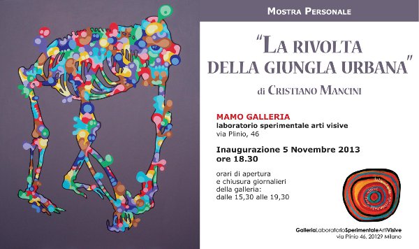 Il valore di Cristiano come pittore è sancito, oltre che dal suo stile, anche dalle numerose esposizioni, sia personali che collettive, che ha collezionato in molte città italiane, tra cui Roma, Milano, Bologna e Udine. Lo abbiamo incontrato alla vigilia dell’inaugurazione della sua ultima personale intitolata “La rivolta della giungla urbana”, che si terrà dal 5 fino al 12 novembre a Milano, presso la Mamo Galleria in Via Plinio 46.