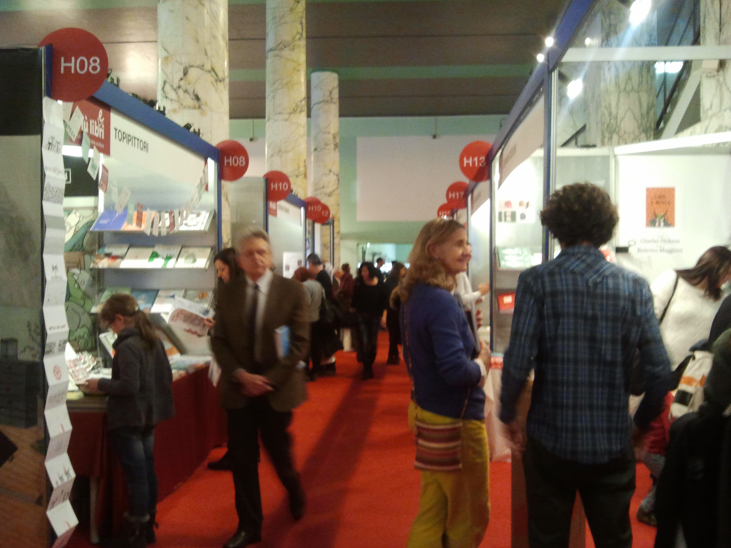 Qui, in una fiera come questa, in questo allucinante pout-pourri umanoide, alcune di queste persone, che lavorano sul serio con i libri, puoi guardarle negli occhi, scambiarci due parole, dargli la mano e magari complimentarti per quello che fanno. O magari conoscere lo scrittore che ti piace. Io una volta a Più Libri più Liberi ho dato la mano a Edoardo Sanguineti (o era a Torino? boh…).