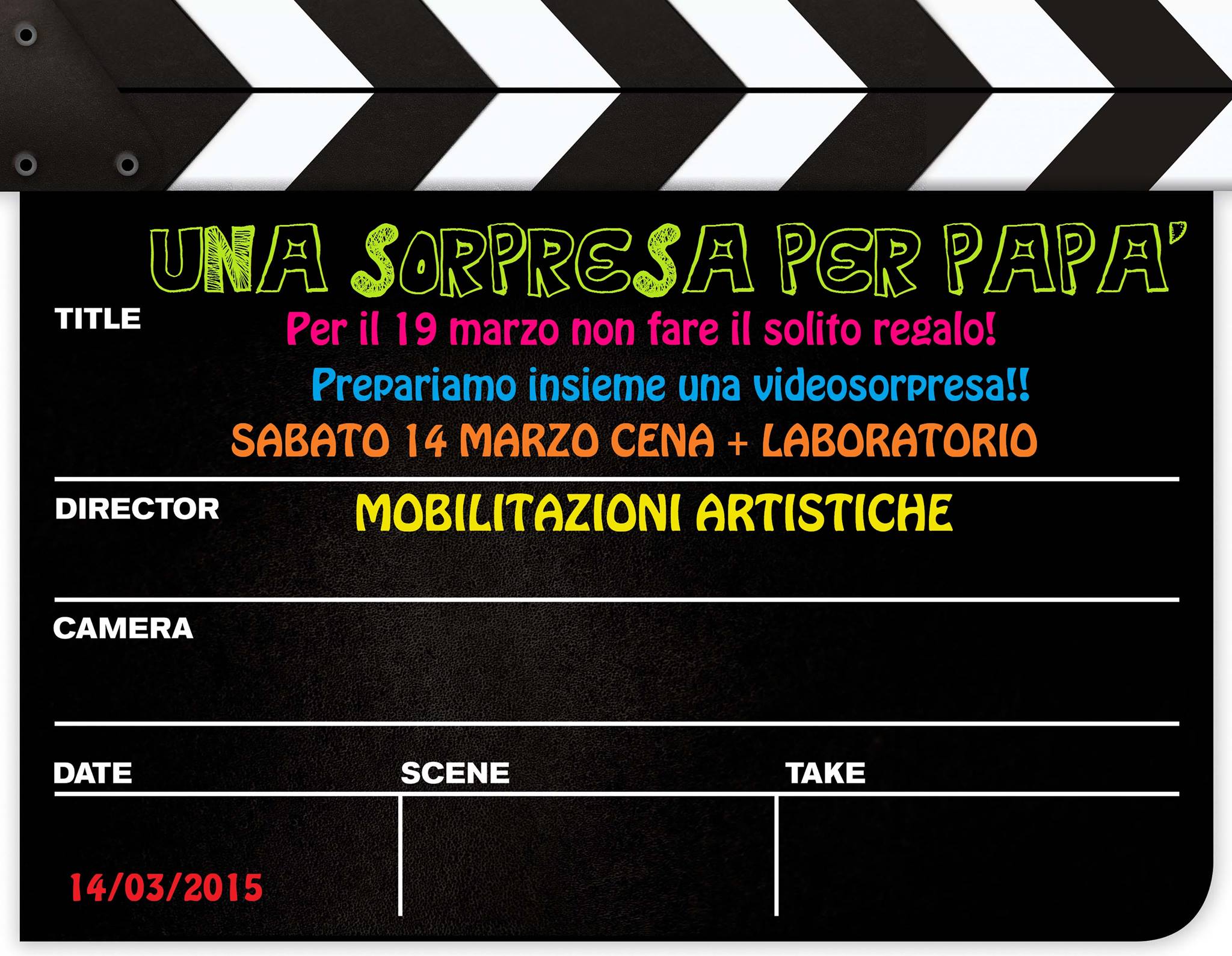 Per la festa del papà MOBilitazioni Artistiche ha preparato una sorpresa speciale!! Sabato 14 marzo dalle ore 20 alle ore 00.00, laboratorio “CIAK SI GIRA” dedicato ai papà, per preparare una videosorpresa per la festa di San Giuseppe!