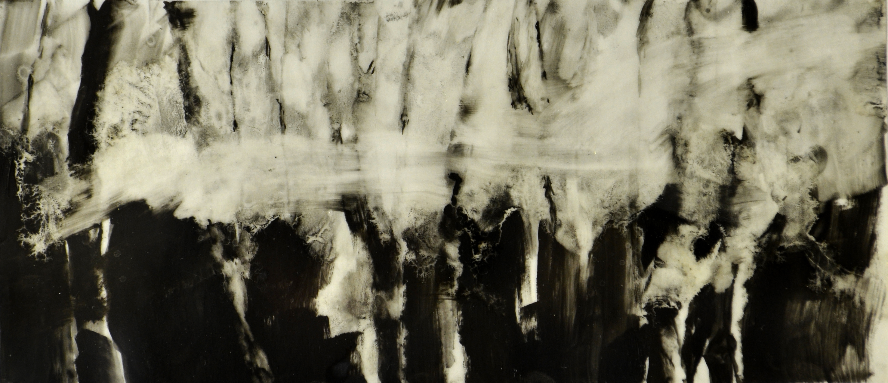 Cercare un punto di riferimento certo, immutabile, dove i cambiamenti sono regolari e irrefrenabili. Un luogo in cui la quiete contiene l’essenza della vita. Trovare un posto in cui il susseguirsi rapido e generoso dei tronchi e dei fusti crea delle camere segrete in cui il nostro pensiero riesce a rifugiarsi. Interno Natura è proprio questo. Una perfetta corrispondenza tra l’essenza della Natura e il nostro essere. Rami intricati come i frutti della nostra mente, colature di colore che segnano il foglio con fatica, cancellature, come esperienze da scacciare via. Il bosco diventa uno specchio.