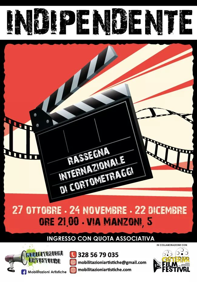 Martedì 27 ottobre parte INDIPENDENTE, la rassegna di cinema indipendente a cura di MOBilitazioni Artistiche pensata per regalarvi pillole di cinema in attesa della nuova edizione del Cisterna Film Festival.